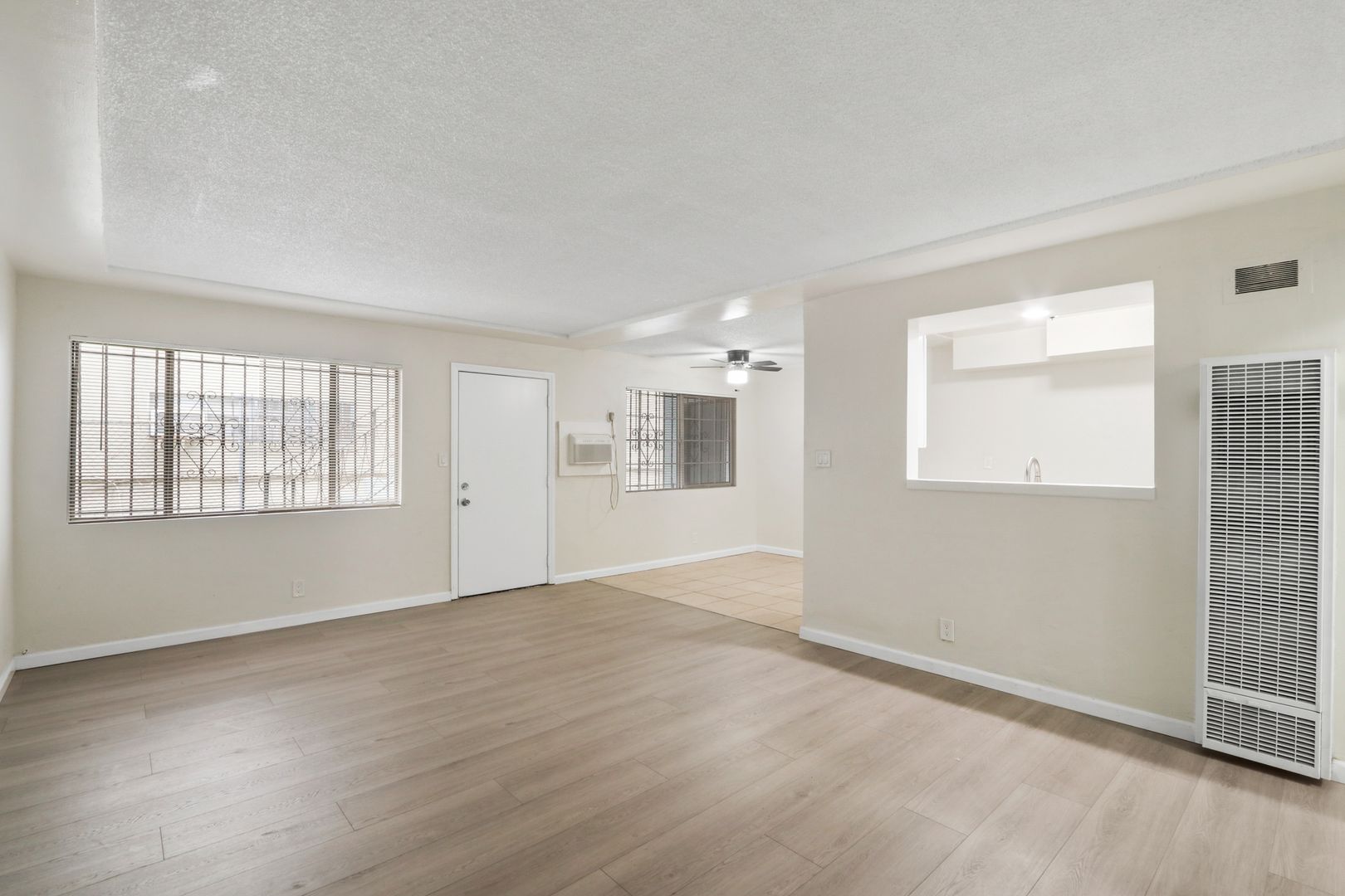 The unit includes mirror closets, an extra storage closet, a ceiling fan, a wall heater, and a wall A/C for year-round comfort. An assigned 1-car carport is provided for your convenience.
