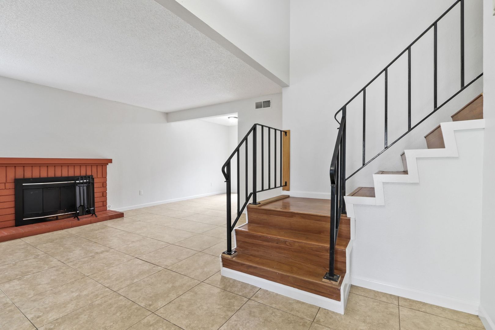 Welcome to this stunning 3-bedroom, 2-bathroom attached townhome offering comfort, style, and convenience. The home features laminated wood flooring, tile flooring in key areas, and a spacious living room complete with a cozy fireplace. The kitchen includes wooden cabinetry, granite countertops, a stove, and a garbage disposal.