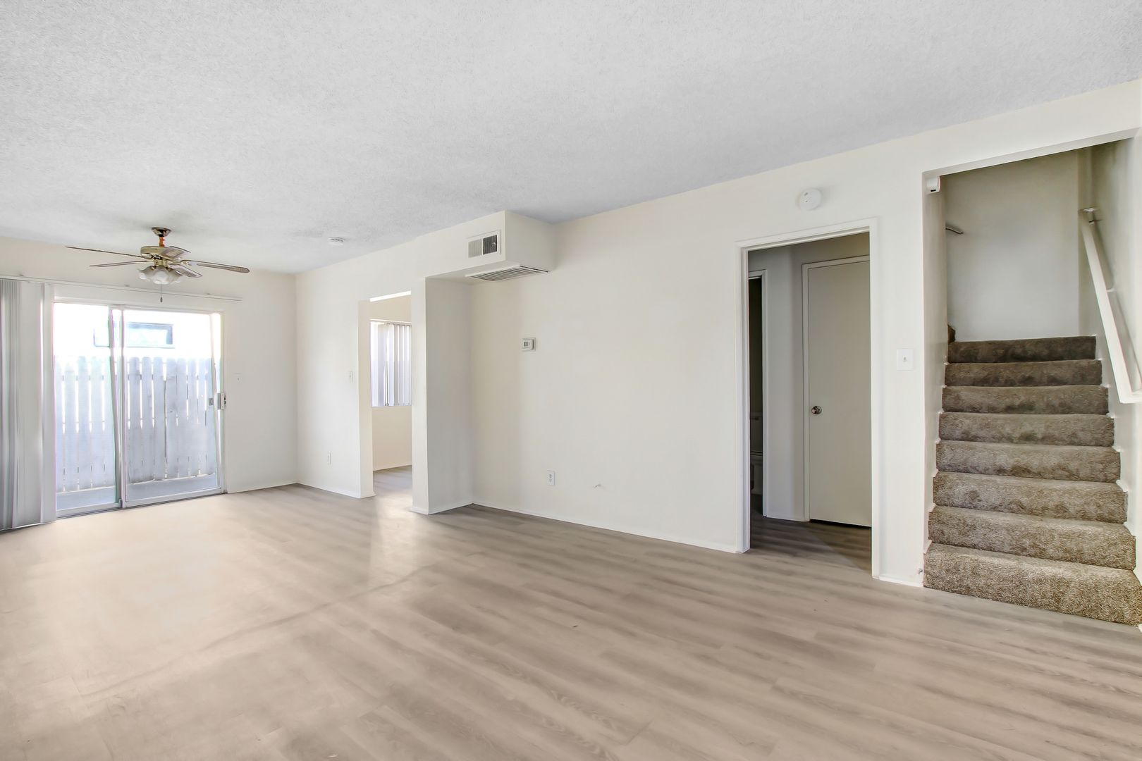 Enjoy your private patio, ideal for relaxing or entertaining in the California sunshine. Inside, you'll find central A/C and heating to keep you comfortable year-round, along with laminate wood flooring in the living areas and soft carpeted bedrooms for a warm, inviting feel.