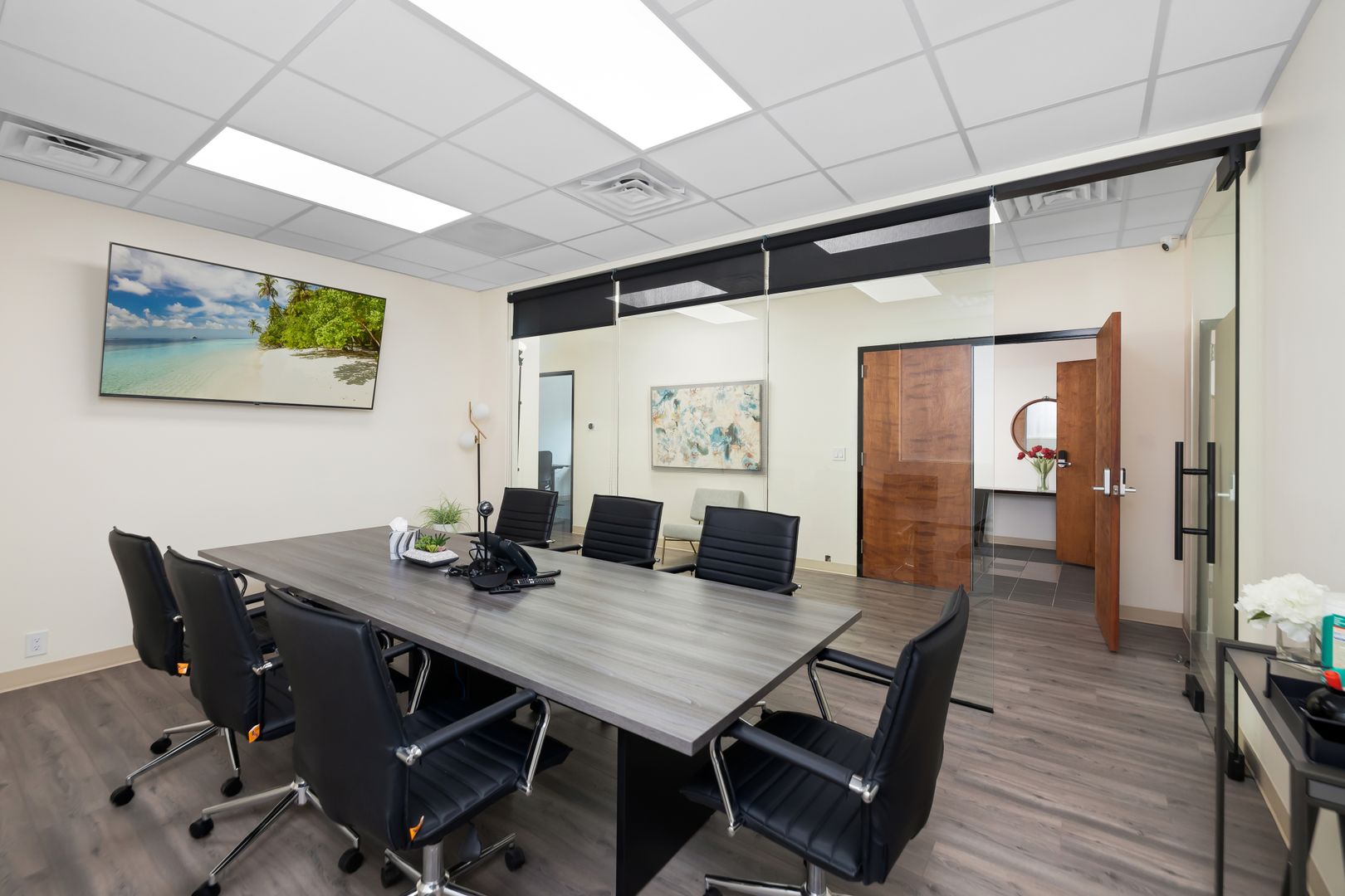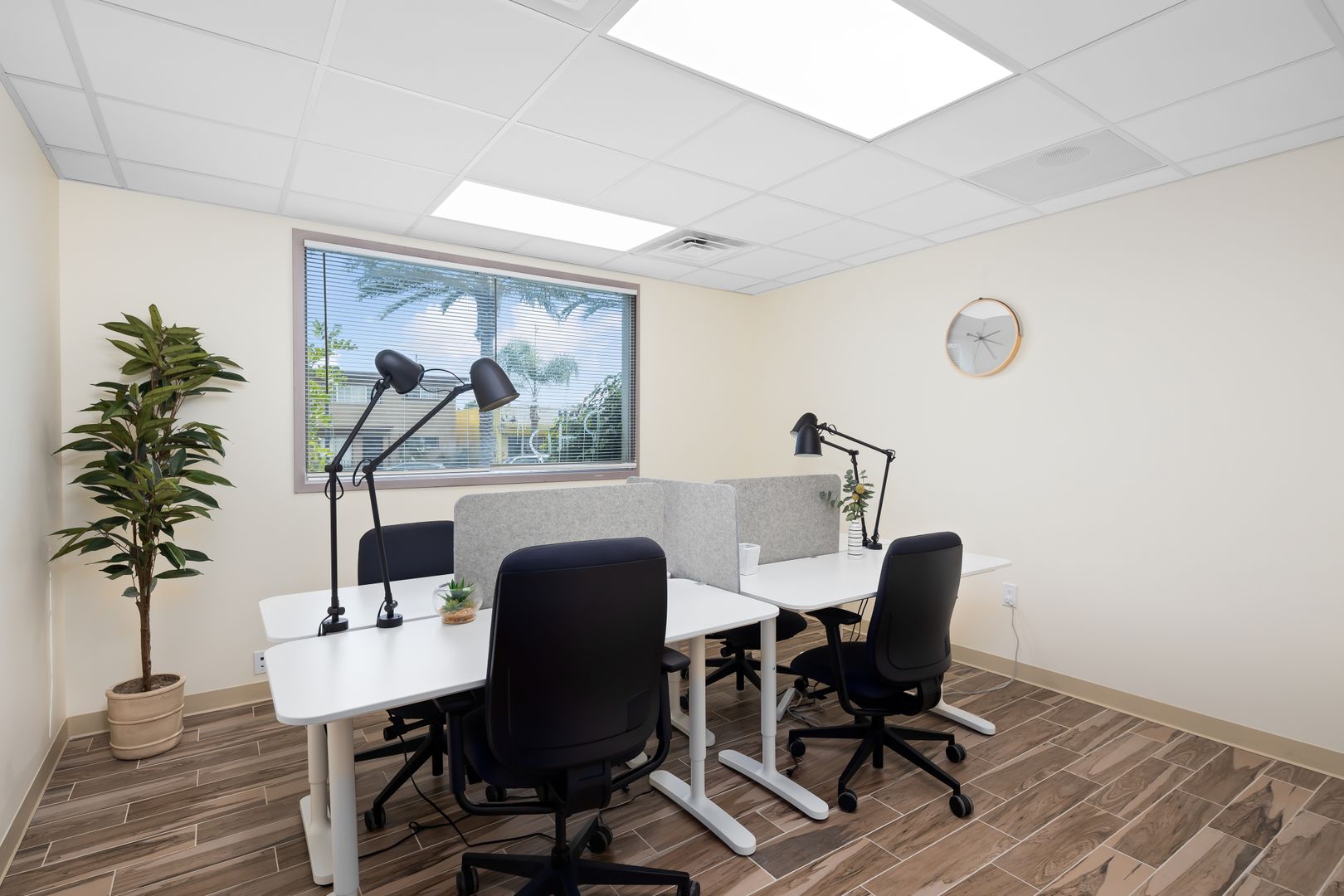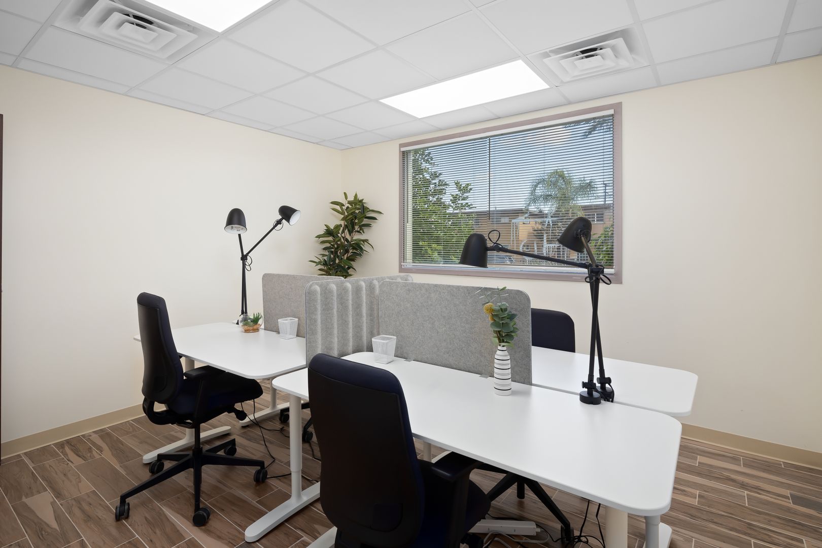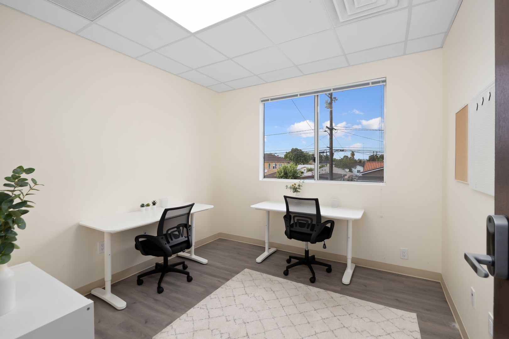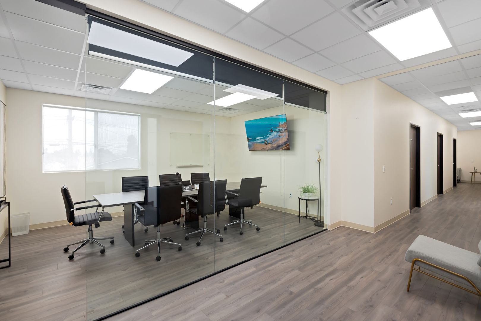 Multiple private suites offer a flexible and professional workspace solution with our large office building. We provide privacy, functionality, and comfort, making them suitable for various businesses and professionals, from startups and small businesses to freelancers and remote workers. Which provides privacy, security, and a dedicated environment for focused work. Each private suite is fully furnished to support the occupant's work needs. This typically includes desks, ergonomic chairs, storage solutions (like cabinets and shelving), and sometimes additional furniture like sofas or lounge chairs for comfortable client meetings. Adequate lighting is provided within each suite, combining natural light from windows and artificial lighting. These suites are equipped with essential technology infrastructure, including power outlets, data ports, and high-speed internet connections.